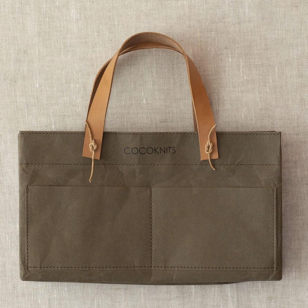 Die neue Kraft Caddy, eine fest stehende Tasche aus waschbarem Kraftpapier, hat einiges zu bieten: Sie hat neun Innentaschen und drei Außentaschen und kann durch ihre Anpassungsform auch in Rucksäcken verstaut werden. Gleichzeitig ist sie fest genug, dass sie offen stehen kann und somit ideal als Projekttasche geeignet ist. So haben Sie jederzeit überall Ihr Strickzeug und das Zubehör griffbereit.
